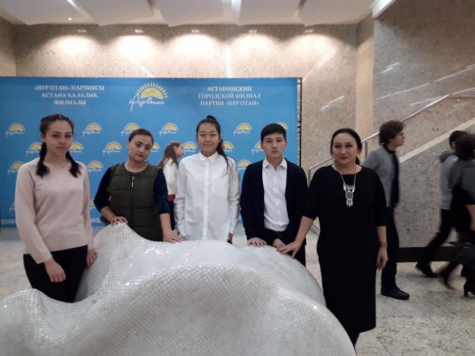 "Aбай атындагы 1 орта мектеп-гимназиясы" КММ Астана каласы,"Мын бала" республикалык мадени-агартушылык жобасында казак тили мен адебиет панинин окытушысы А.Р. Досыкенова "Мен казашка сойлеймин" жобасыннын женимпазы, 11в сынып окушысы Тен Владимир оленди манерлеп окудан 10 а сынып окушысы Щербакова Диана эссе жазудан женимпаз атанды.