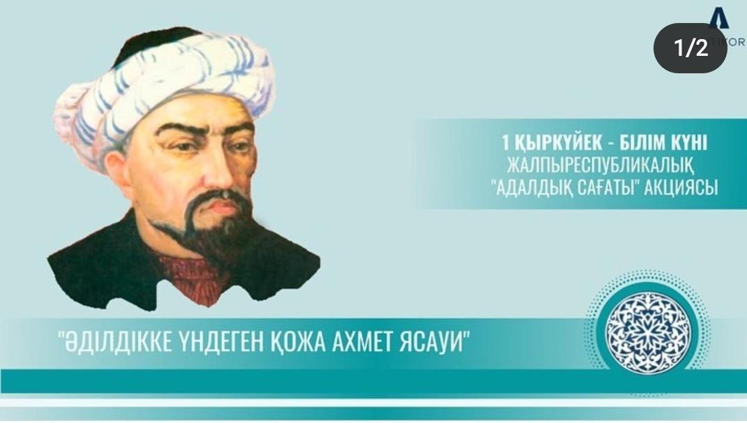 ЖАҢА ОҚУ ЖЫЛЫ «ӘДІЛДІККЕ ҮНДЕГЕН ҚОЖА АХМЕТ ЯСАУИ» ТАҚЫРЫБЫНДА АДАЛДЫҚ САҒАТЫМЕН БАСТАЛДЫ